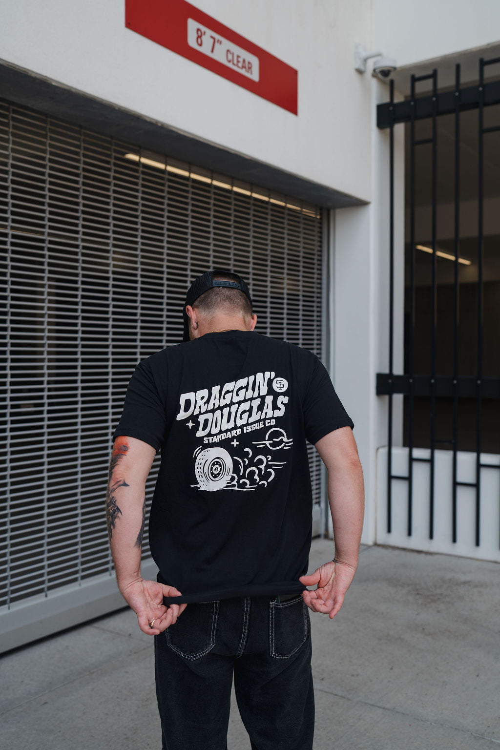 The Draggin’ Douglas Tee is cut from soft, durable cotton and printed with our custom burnout design — bold up front, statement out back. Classic fit. Blacked-out color. Built for comfort whether you’re wrenching in the garage or heading downtown.